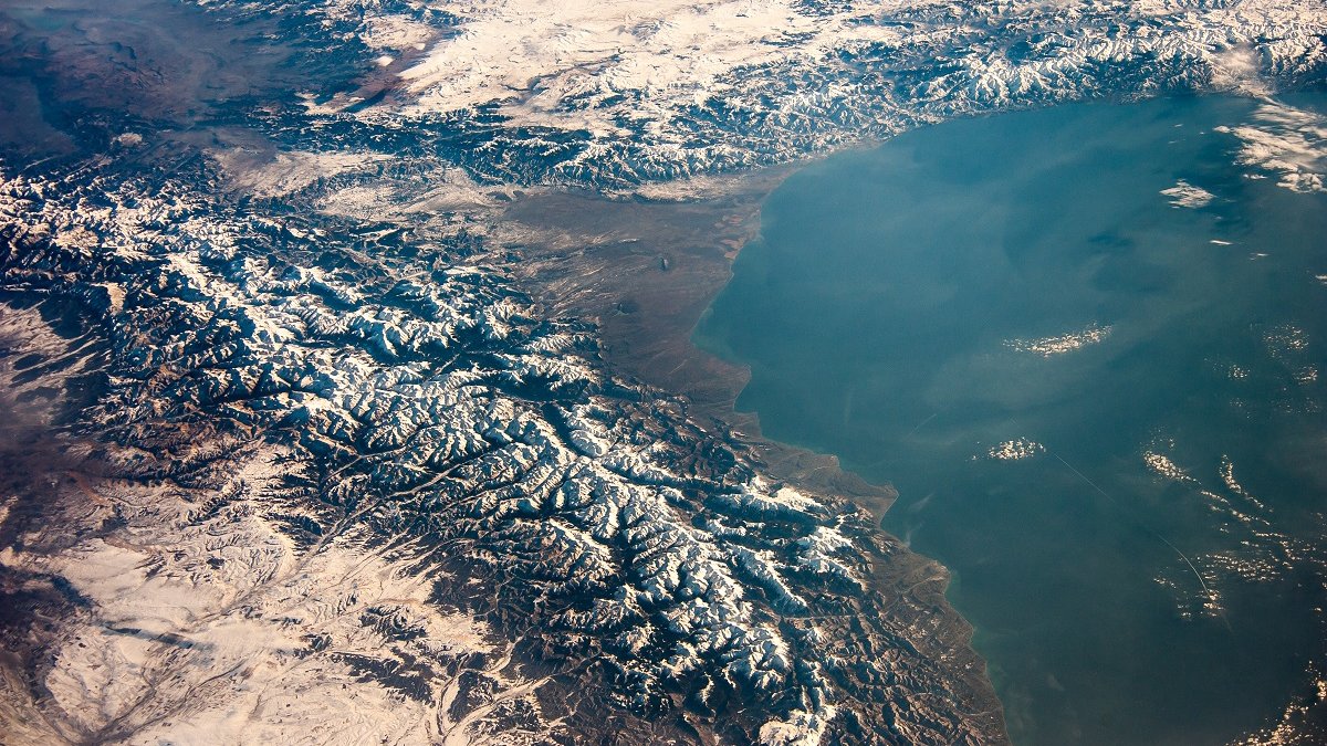 Astronaut Ryazansky posted a photo of Tbilisi, Georgia captured from ISS. Russia at the bottom and Turkey at the upper end are shown on the Black Sea in the photo as well.