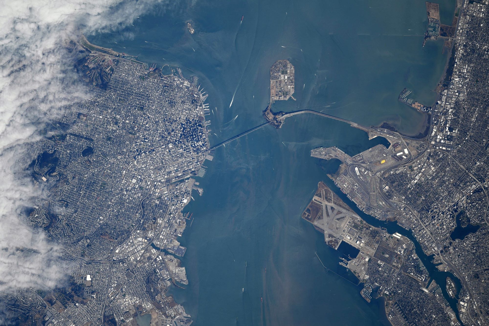 Astronaut Christina Koch captured from ISS San Francisco, Oakland and the Bay Bridge.