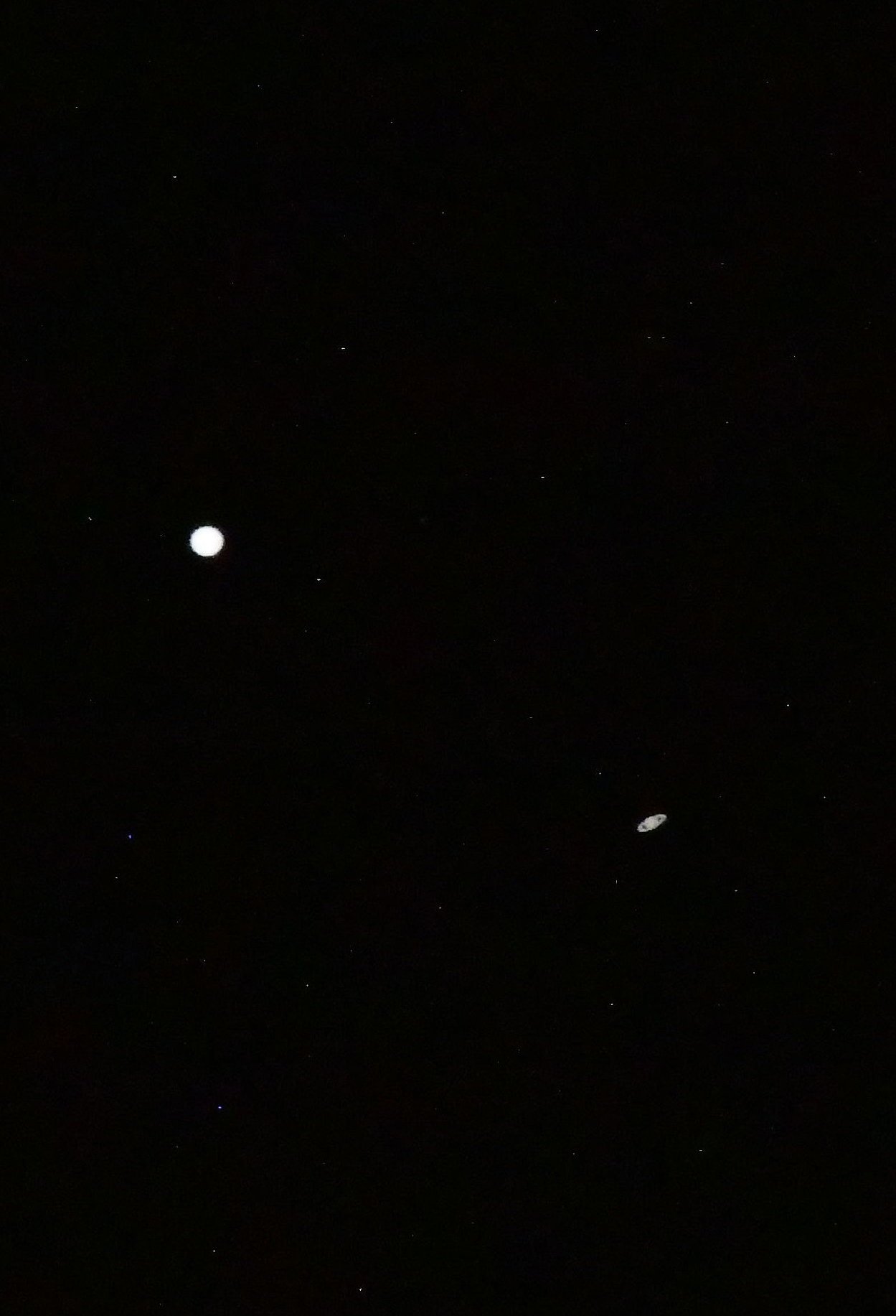 Astronaut Sergey Kud-Sverchkov captured from ISS Jupiter and Saturn coming closer in “the Great Conjunction.”