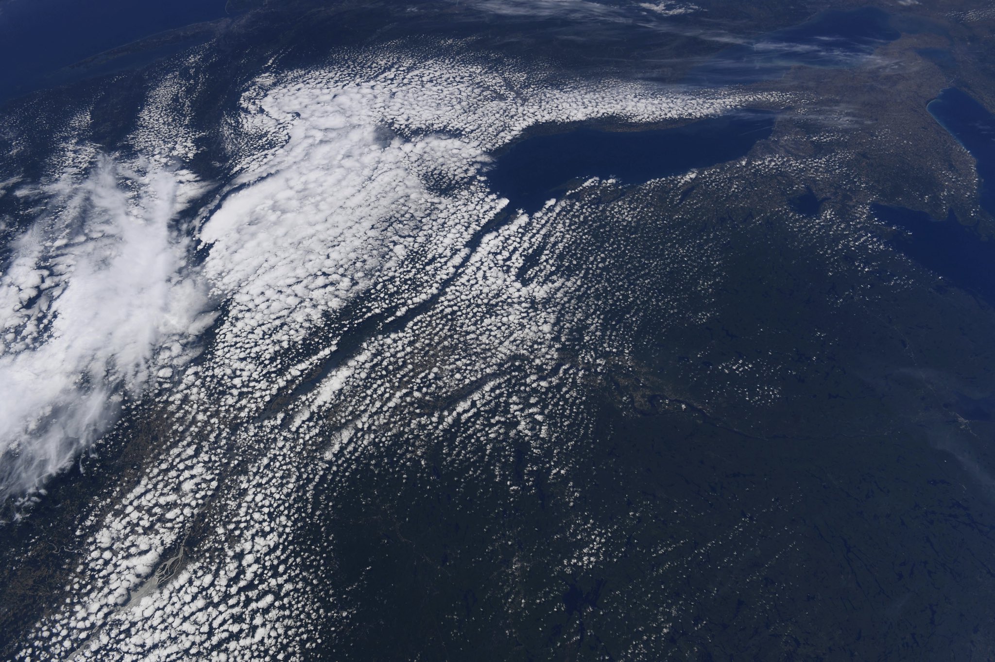 [:ja]ダグ・ハーレー宇宙飛行士がISSから撮影したカナダのセントローレンス川(サンローラン川)です。河口からオンタリオ湖にかけて、雲の下にケベックシティ、モントリオール、オタワ、トロントなどが見えています。