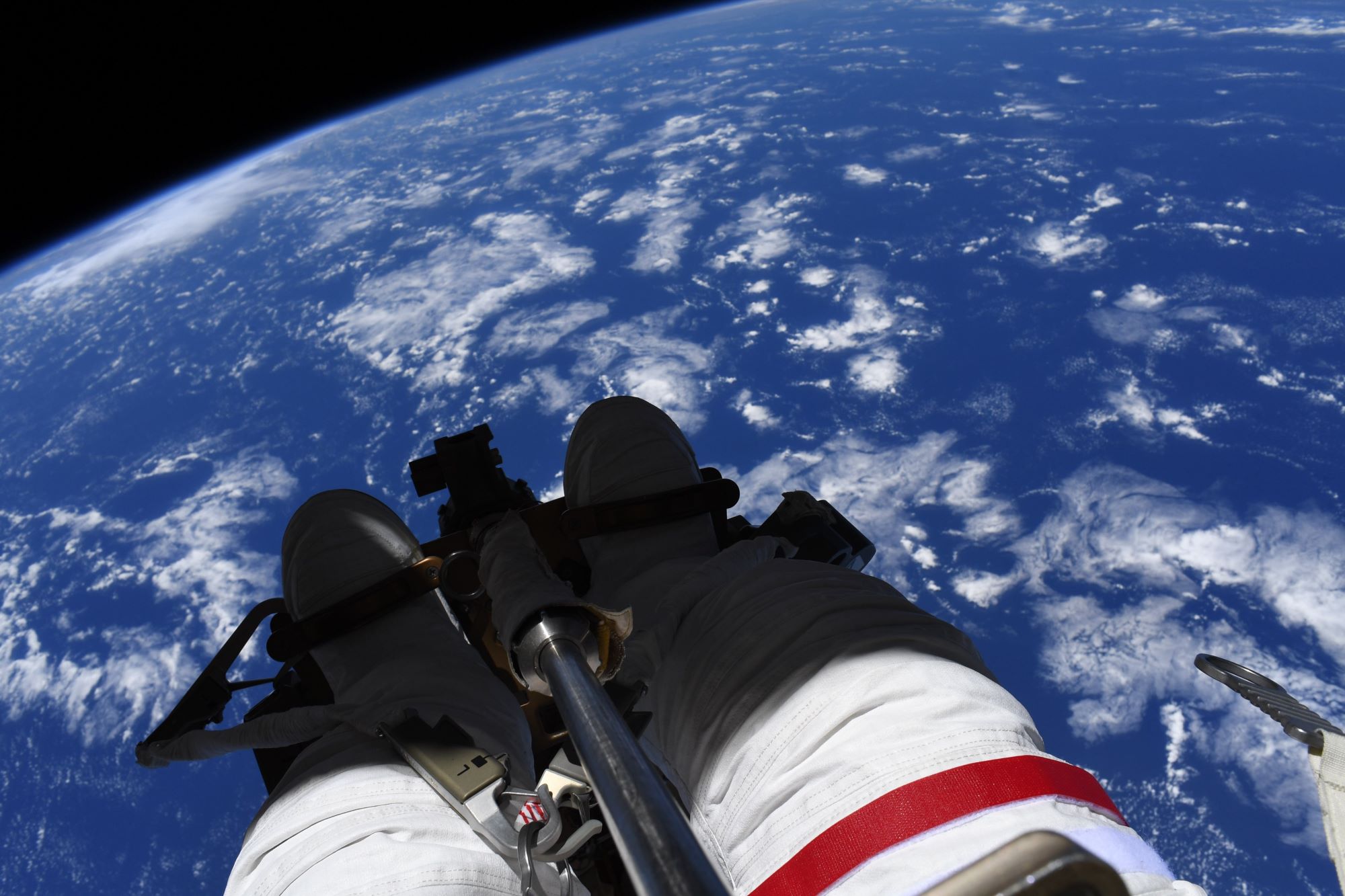 Astronaut Thomas Pesquet captured from ISS “big sea view” during EVA(Extravehicular Activity). The sea covers over 70.8% of the Earth’s surface and it moderates the Earth’s climate and has important roles in the water cycle, carbon cycle, and nitrogen cycle. IPCC Fifth Assessment Report states the the average sea level increased by 0.19m during 1901-2010 and it is expected to continue to rise by 0.45-0.82m compared to the average of 1986-2005 by the end of 21st century in the worst case. (Credit: Thomas Pesquet, ESA, NASA)