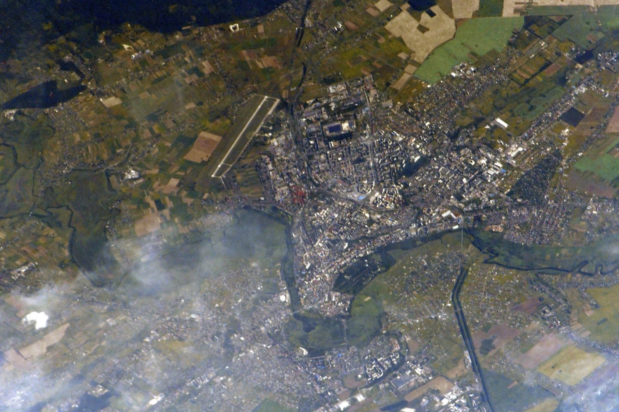 イワン・ワグナー宇宙飛行士がISSから撮影したウクライナのルーツク(ルーツィク)です。ウクライナ政府によると、ルーツクのテレビ塔が爆発で破壊されたと伝えられています。