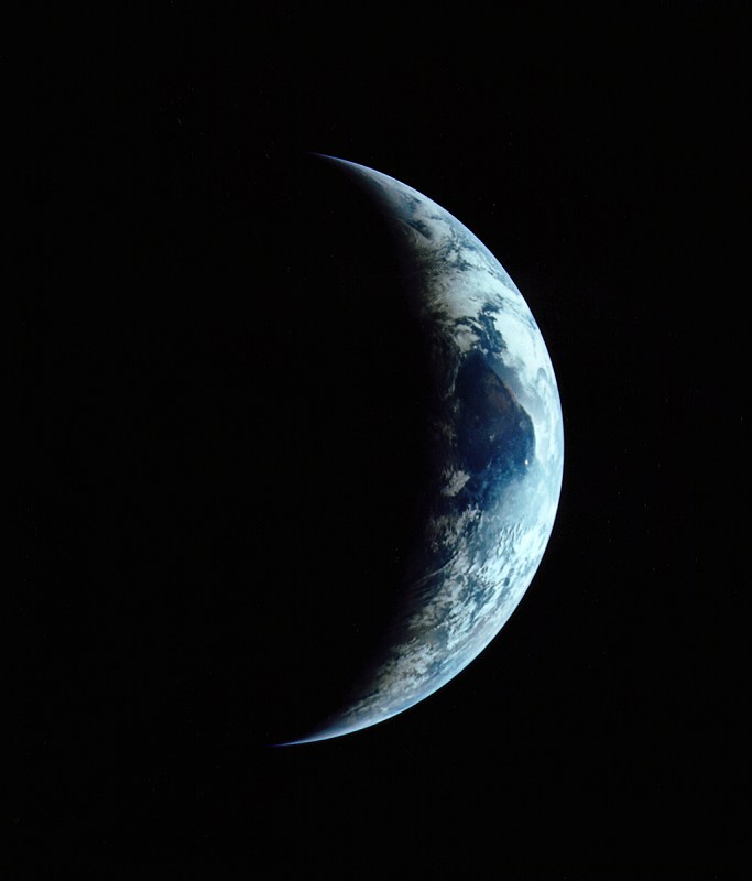 [:ja]NASAが公開した三日月形の地球です。宇宙見た地球も、太陽の光が当たっている部分のみが明るく輝き、撮影点と太陽と地球の位置によって、三日月形に見えます。