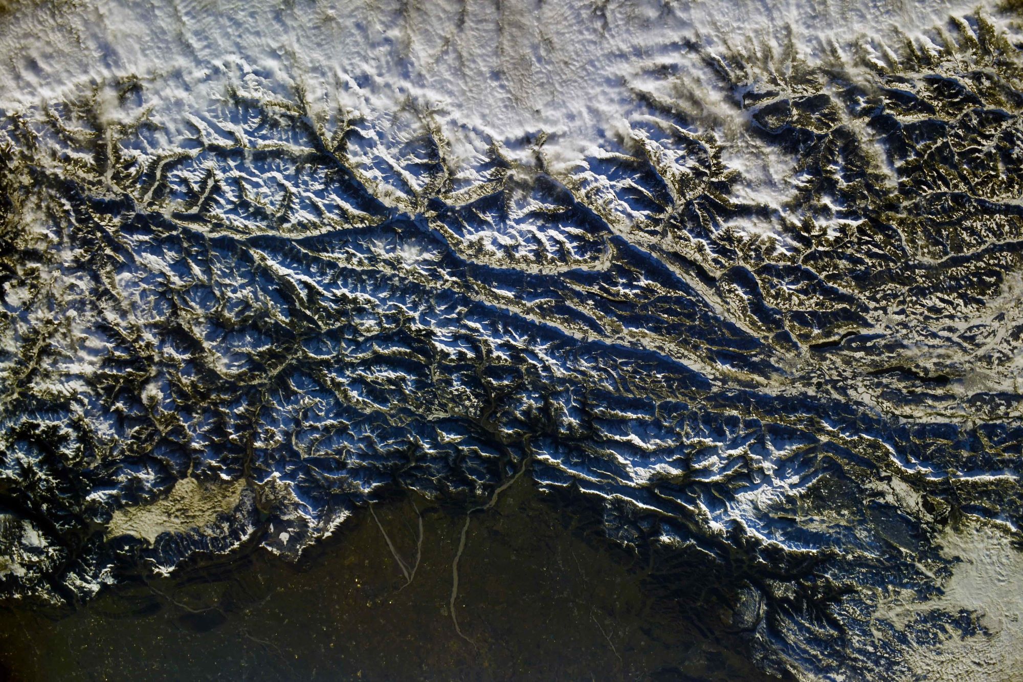 Astronaut Anton Shkaplerov captured from ISS the Eastern Alps. The image shows the area north of Venice, near the border between Austria and Italy. The Monte Zoncolan in the Carnic Alps is in the image as well.