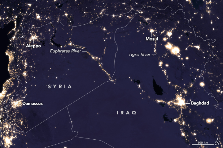 NASA-NOAA’s Suomi NPP satellite captured Syria and other Middle East countries. From the comparative photos of the region in 2012 and 2016, it is notable that the city lights of Damascus and Aleppo significantly decreased.
