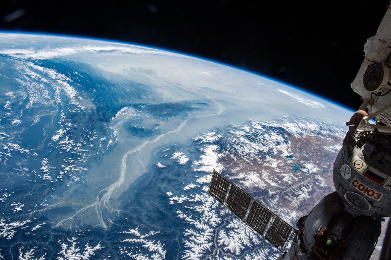 Astronaut Kimiya Yui captured from ISS Bhutan. In the image, Bhutan is located to the right(north) of where Brahmaputra River curves to the left.
