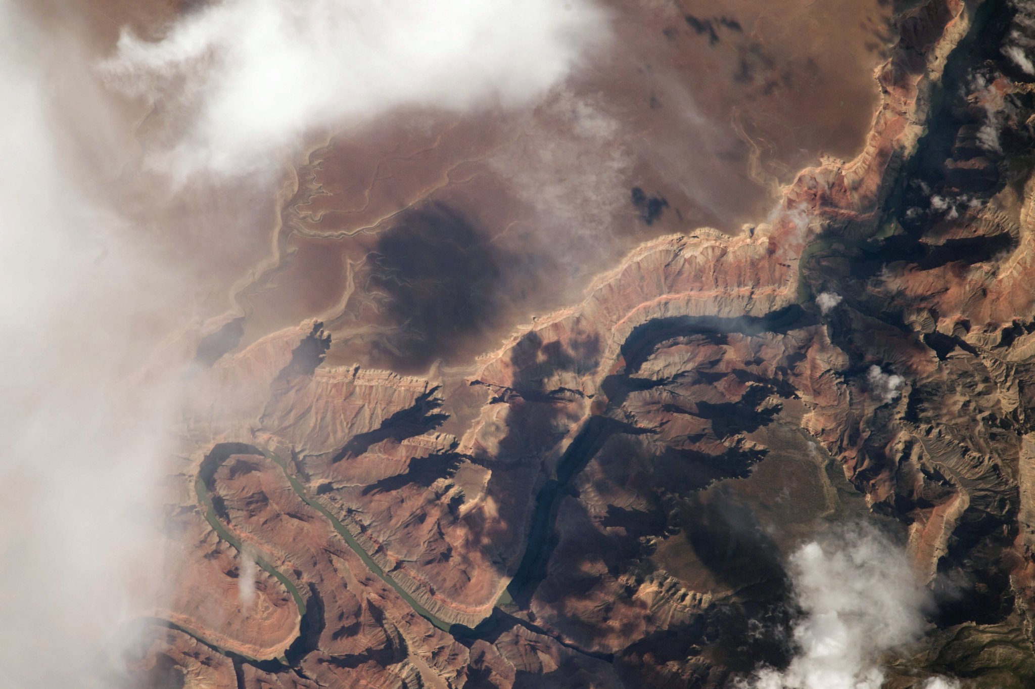 Astronaut Paolo Nespoli captured from ISS the Marble Canyon and Colorado River. The canyon marks the western boundary of the Navajo Nation. The name Marble Canyon is a misnomer because there is no marble there.