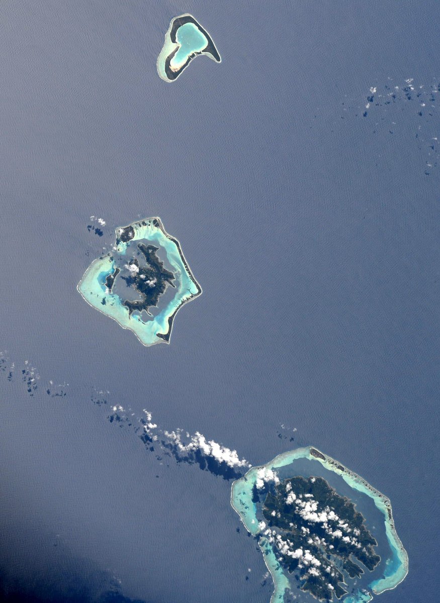 Astronaut Randy Bresnik captured from ISS Bora Bora Island of Tahiti. Bora Bora is a major international tourist destination, famous for its aqua-centric luxury resorts.