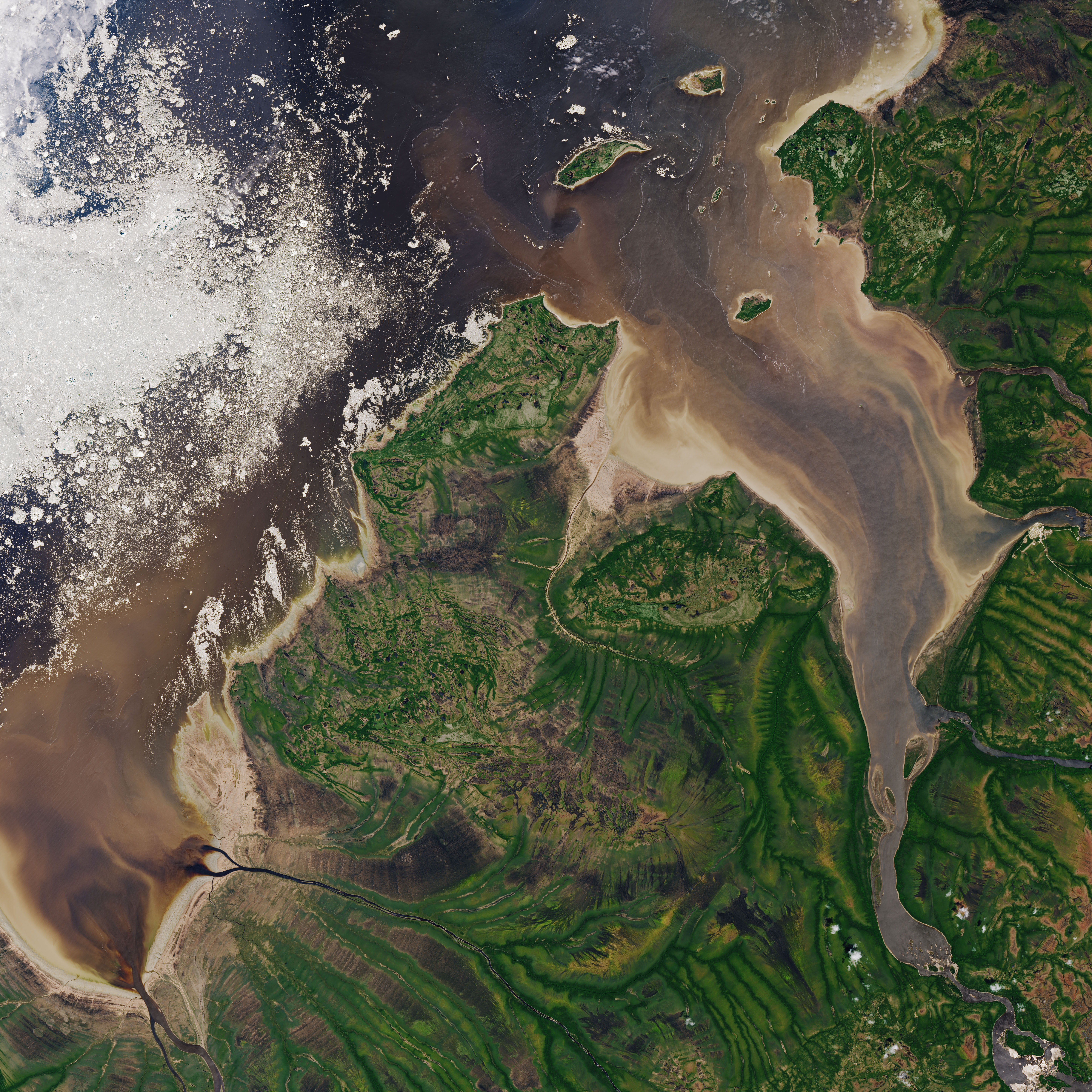 NASA’s Landsat 8 captured James Bay (Rupert Bay in the southeast), Quebec, Canada. The image shows the the estuary or the mouth of Rupert River at James Bay where fresh river water meets sea water.