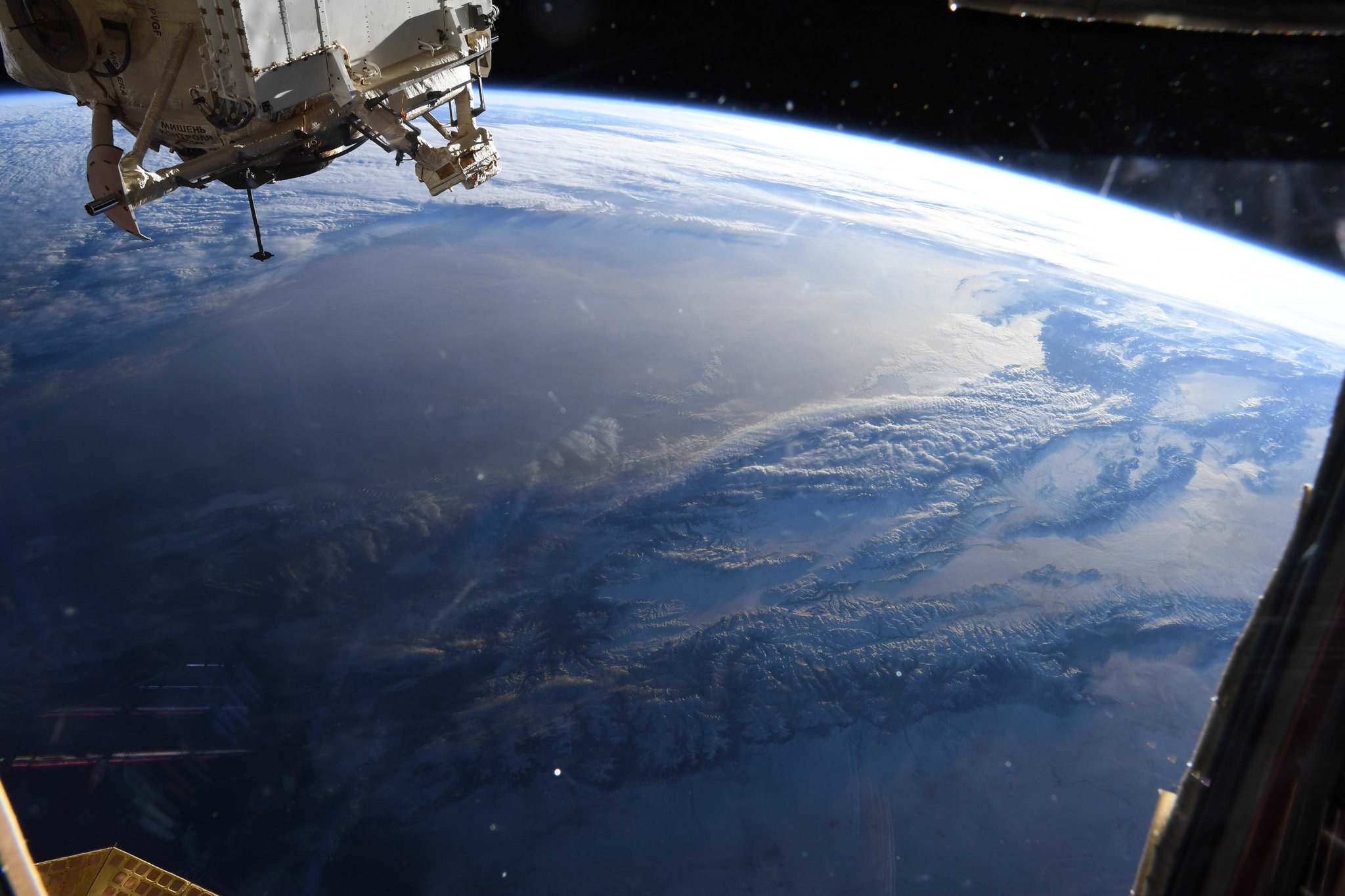 Astronaut David Saint-Jacques captured from ISS Kyrgyzstan and Tian Shan Mountains.