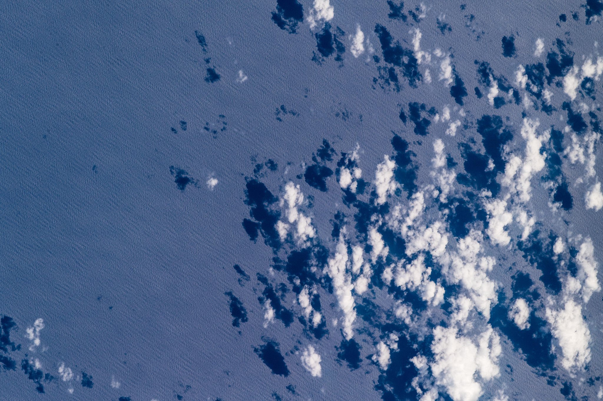 [:ja]アレックス・ゲルスト宇宙飛行士がISSから撮影した海と雲です。雲が気持ちよさそうに浮いています。細かい波がパターンとなって背景になっているのが印象的です。