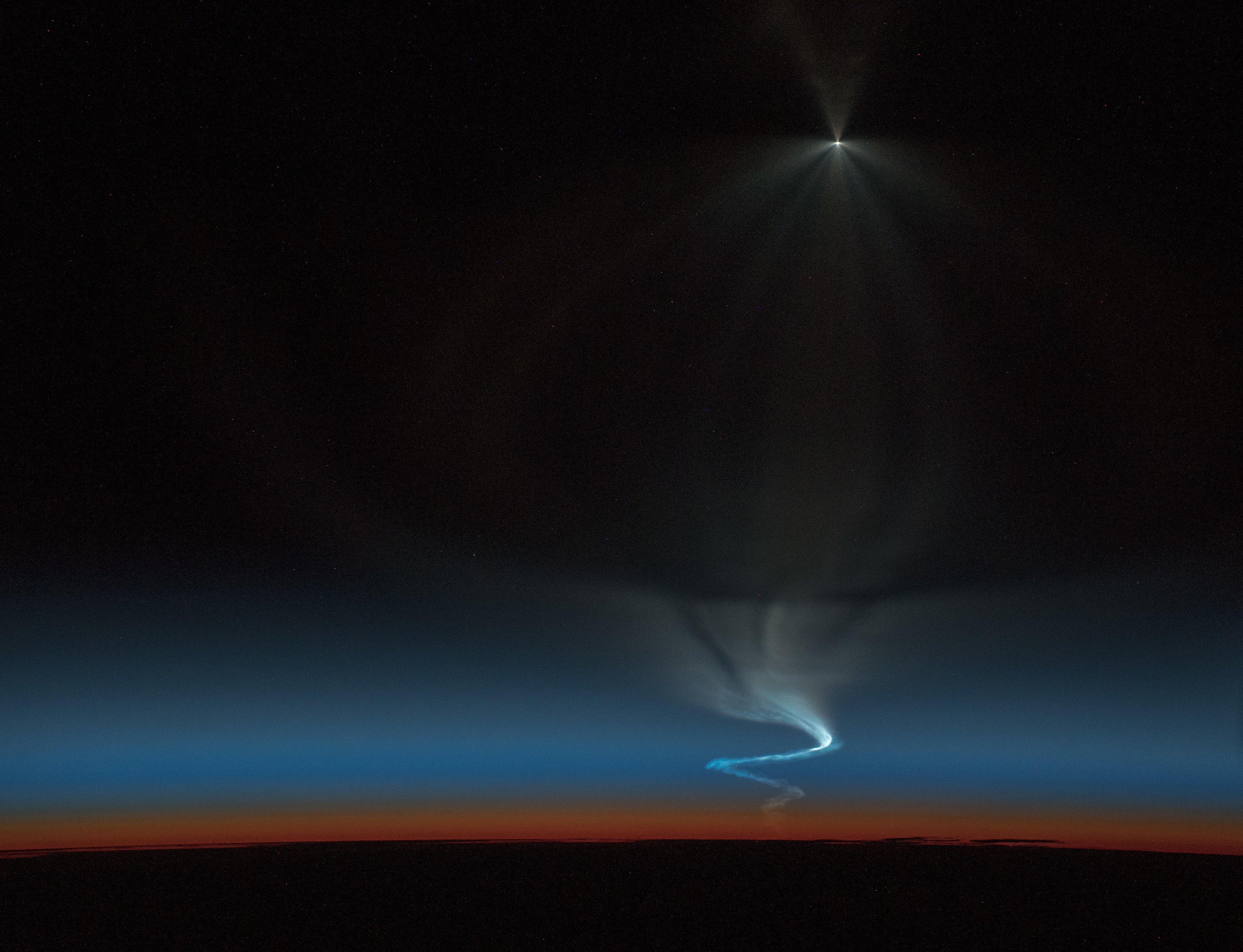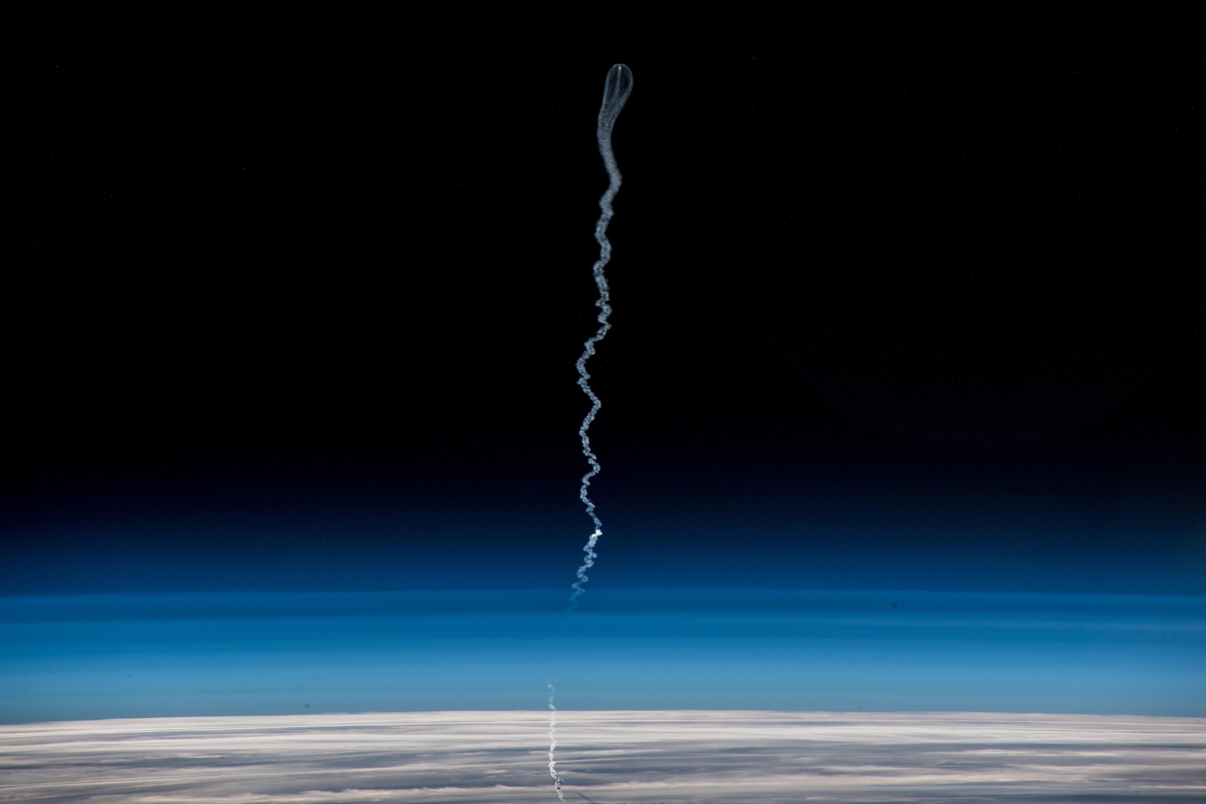 [:ja]アレックス・ゲルスト宇宙飛行士がISSから撮影したロシアのソユーズの打ち上げの様子です。ロケットの噴煙の影が一筋できていて興味深いです。