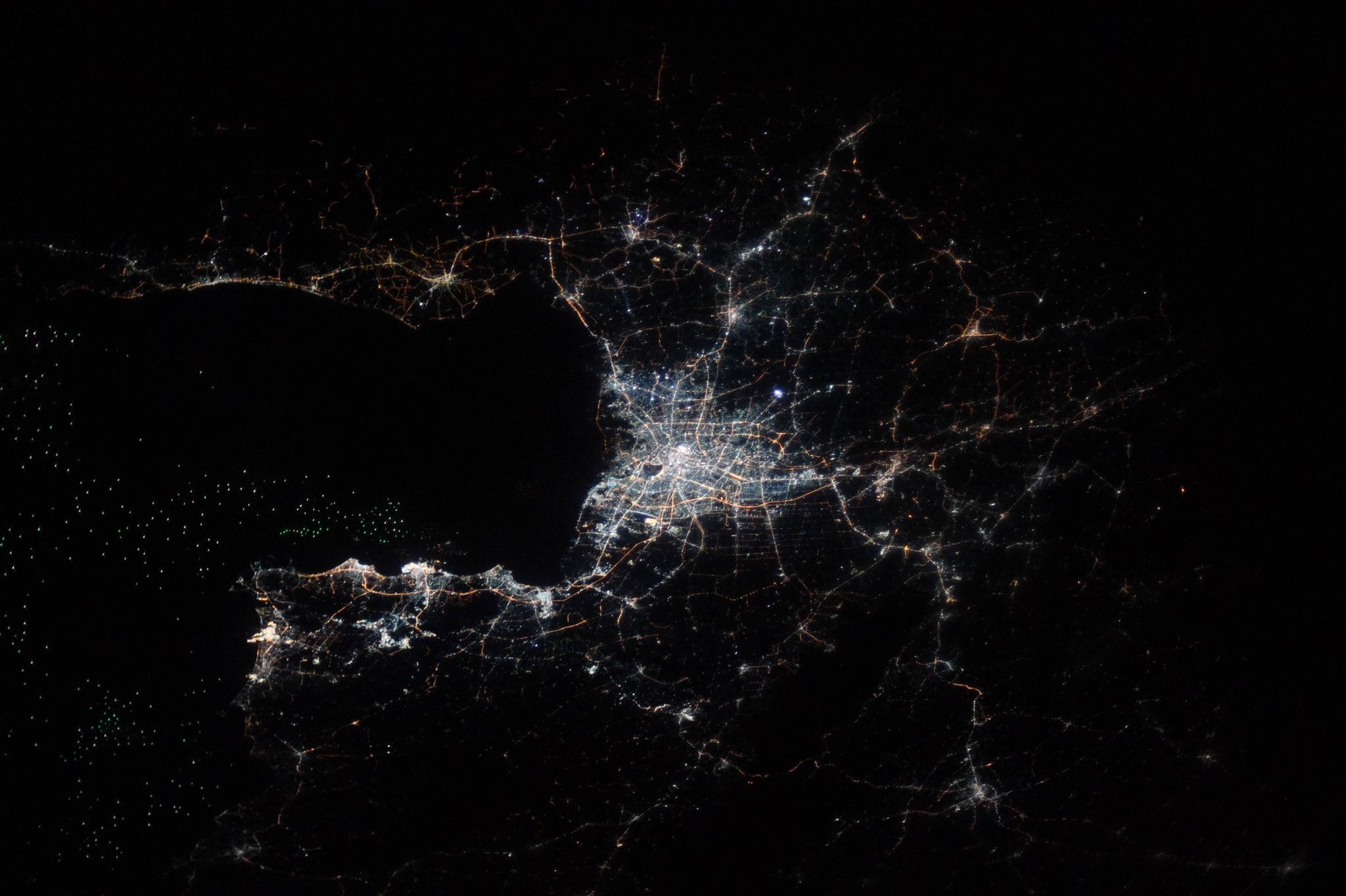 [:ja]ジェシカ・メイヤー宇宙飛行士がISSから撮影した夜のタイの首都バンコクとイカ釣り漁の灯りです。バンコクは都市圏人口は1500万人を超える世界有数の大都市です。