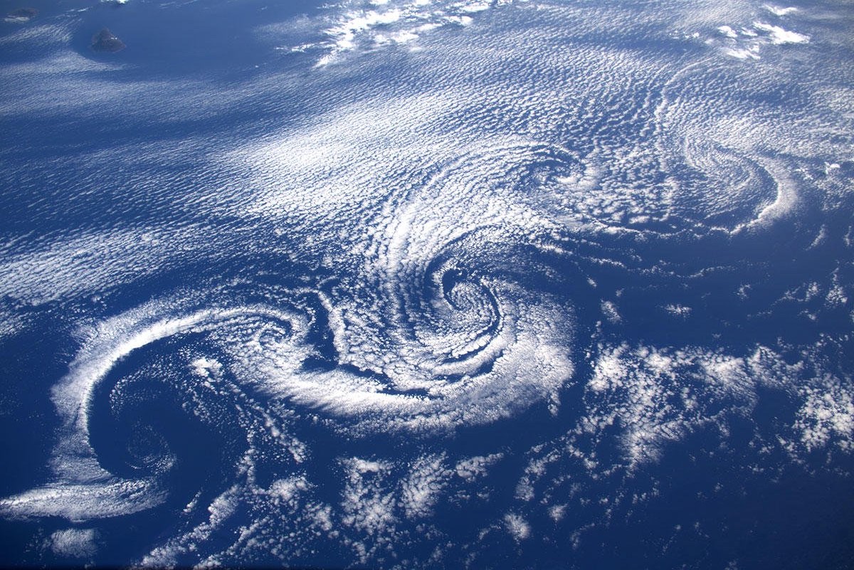 Astronaut Luca Parmitano captured from ISS Azores Islands and Karman Vortex nearby. La Palma and La Gomera of Spain’s Canary Islands are also captured in the image.
