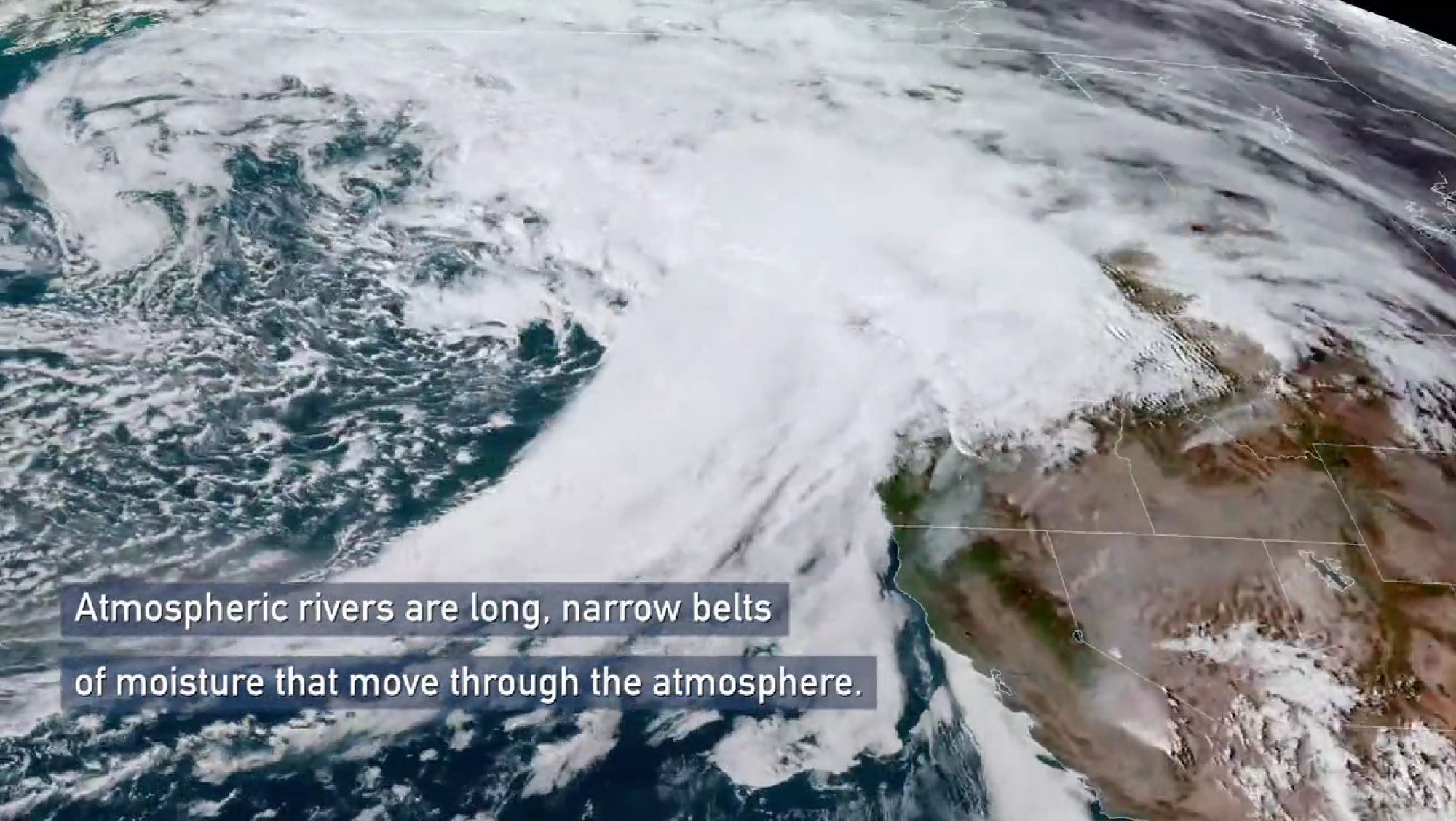 米国大気海洋庁NOAAの地球観測衛星が撮影した大気の川です。