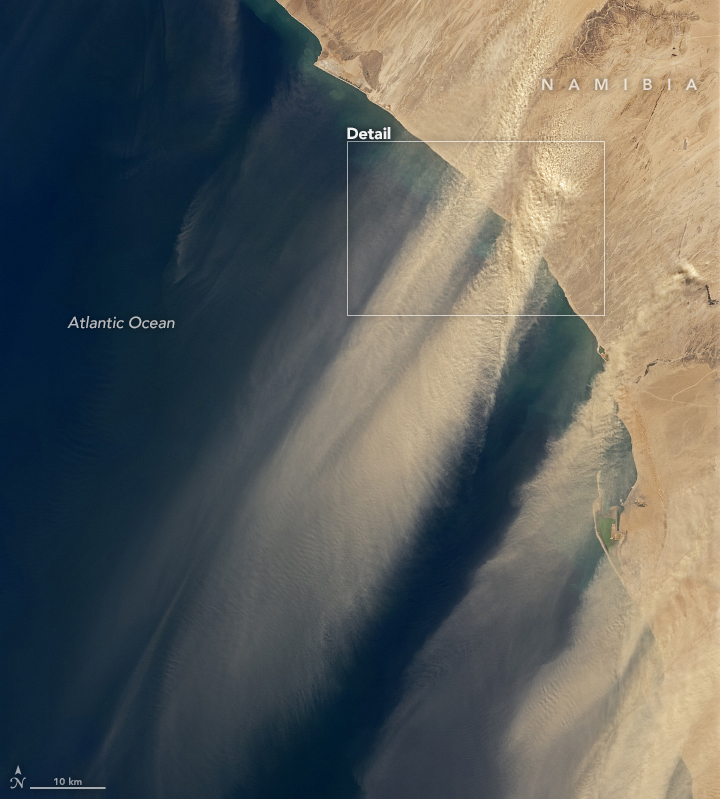 NASAの地球観測衛星Landsat 8が撮影したナミビアからのダストです。