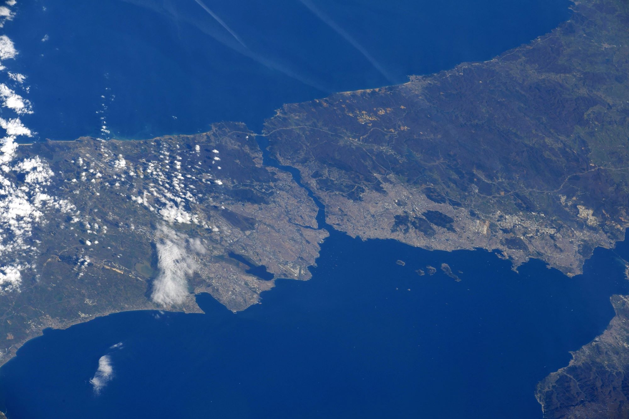 Astronaut Soichi Noguchi captured from ISS the Asia-Europe bridging Bosphorus Strait, Istanbul, Turkey.