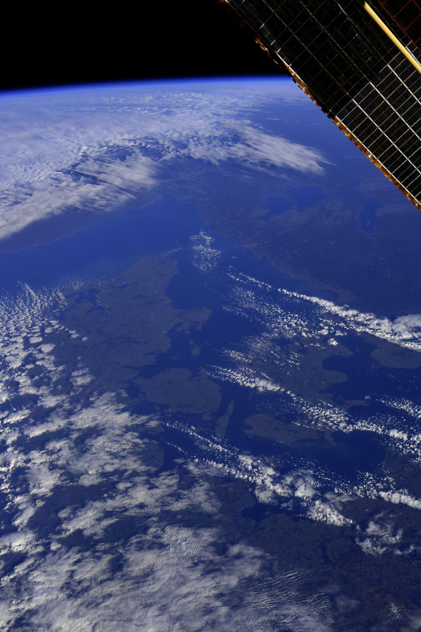 Astronaut Andreas Mogensen captured from ISS Denmark. Copenhagen, the capital city, is shown to the right of the image.