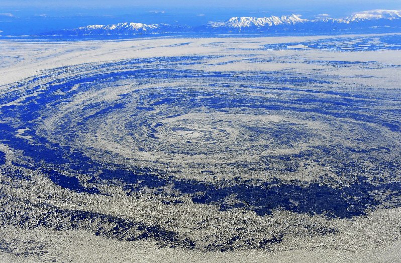 Astronaut Takuya Onishi captured from ISS the ice swirls of Labrador Sea, off the east coast of Canada.