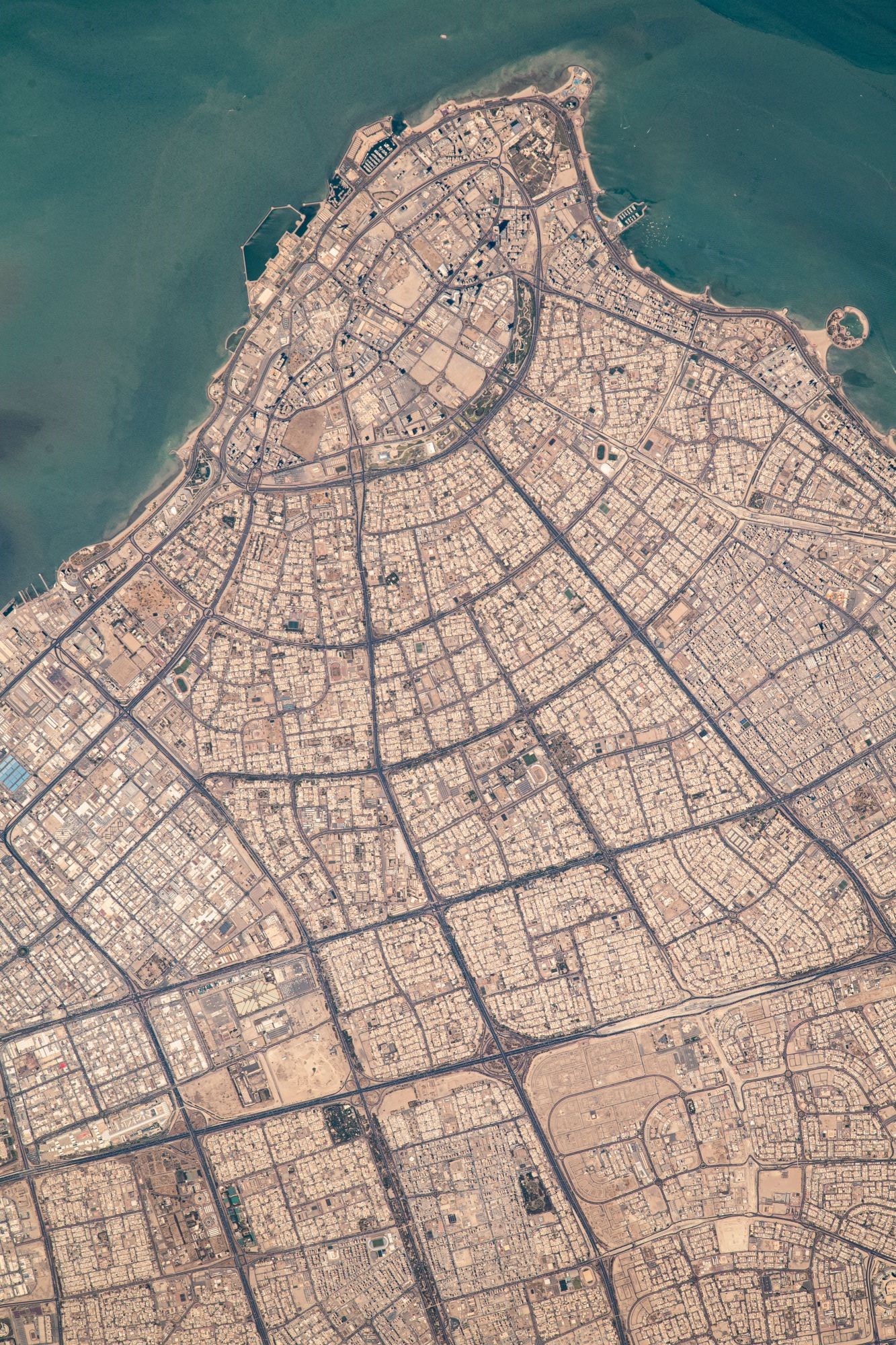 スルタン・アル・ネヤディ宇宙飛行士がISSから撮影したクウェート市(クウェート・シティ)です。同国の独立記念日は2月25日です。