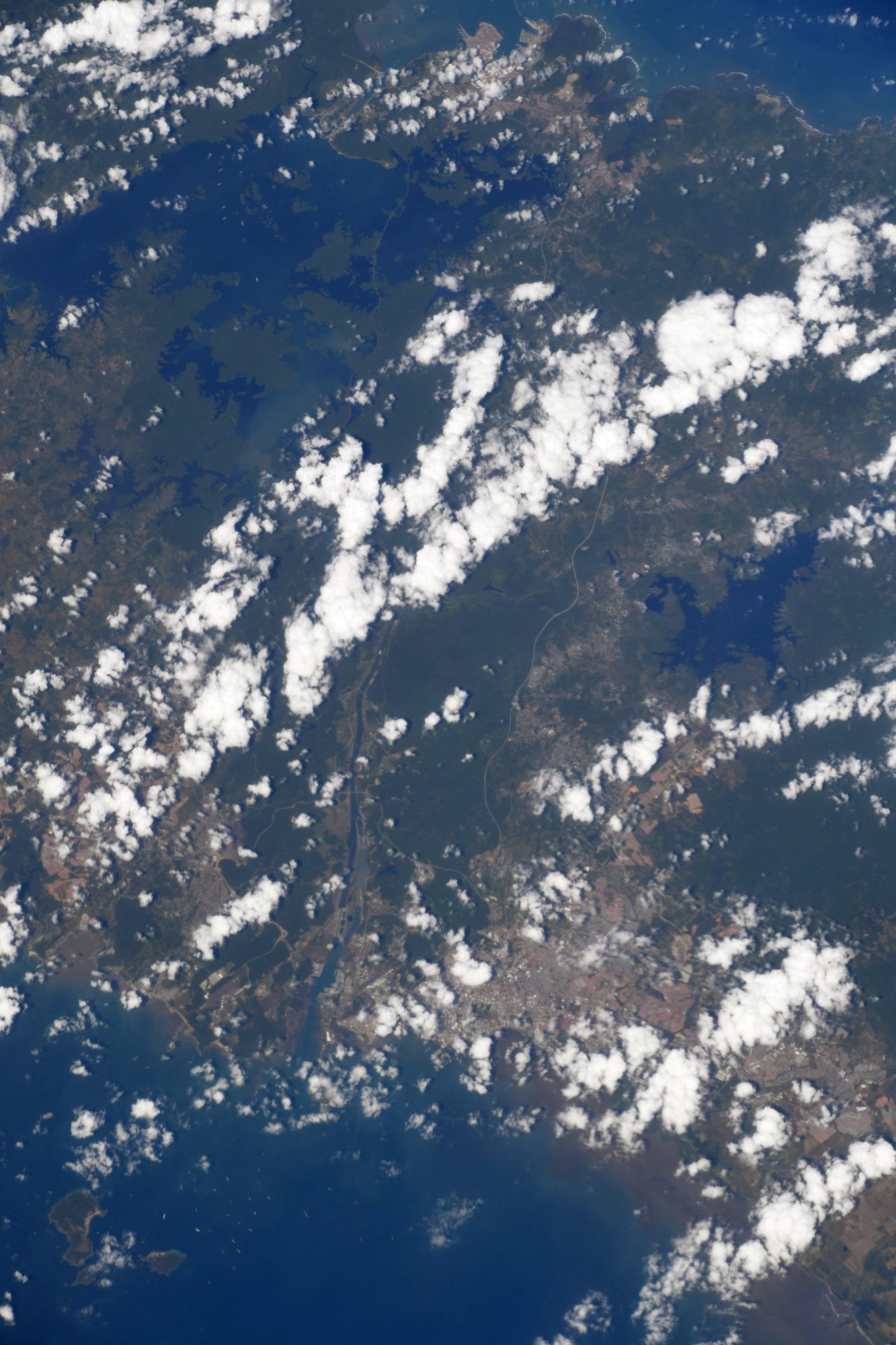 野口聡一宇宙飛行士がISSから撮影した太平洋と大西洋をつなぐパナマ運河です。